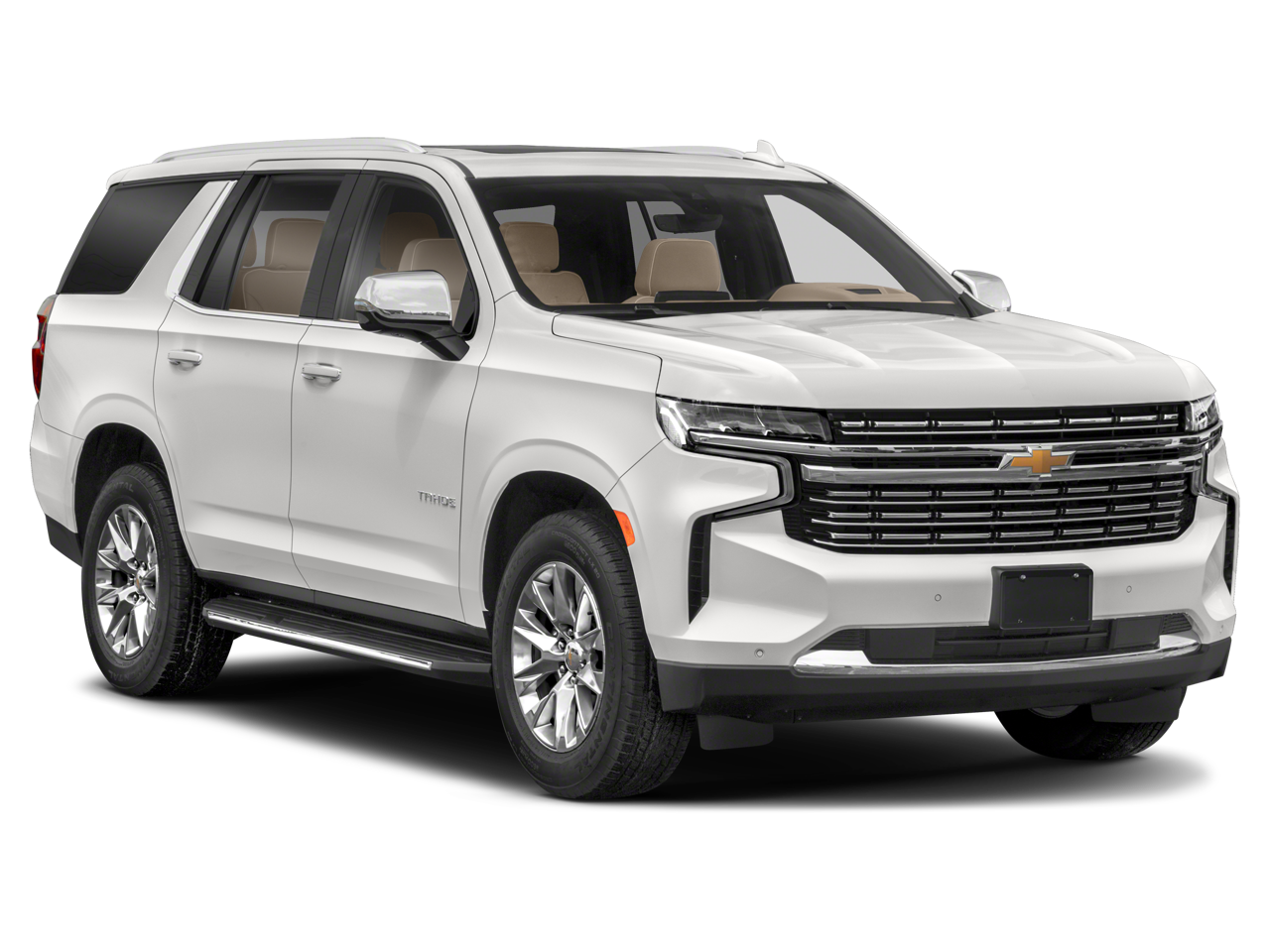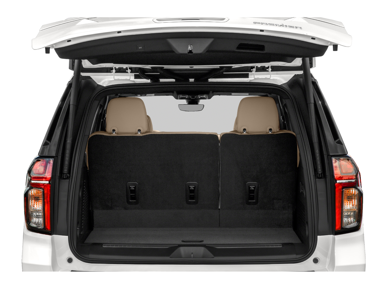 Max Trailering Package: Extra Capacity Cooling System. Advanced Trailering Package: Trailer Side Blind Zone Alert; Smart Trailer Integration Indicator; Integrated Trailer Brake Controller; Hitch Guidance with Hitch View. Premium Package: Dual-Pane Power Panoramic Sunroof. Preferred Equipment Group 1LZ: Bright Front and Rear Door Sill Plates; Memory Settings; Perforated Leather Seat Trim; Remote Start; 3rd Row 60/40 Power-Folding Split-Bench Seat; Safety Alert Seat; Chrome Door Handles with Body-Color Strip; Hill Descent Control; Heated Steering Wheel; LED Daytime Running Lamps; Rear Cross Traffic Alert; Driver and Front Outboard Passenger Airbags; Wireless Charging; Front High-Back Reclining Bucket Seats; Universal Home Remote; Color-Keyed Carpeting Floor Covering; Heated 2nd Row Outboard Seats; Hands-Free Rear Power Programmable Liftgate; Chevrolet Infotainment 3 Premium System Radio; 2-Speed Active Electronic Autotrac Transfer Case; 1st and 2nd Row Color-Keyed Carpeted Floor Mats; Enhanced Driver Information Cente