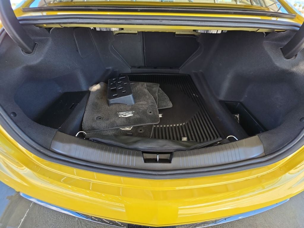 Technology Package: Pollutant/odor/fine Dust Air Filter; Adaptive Forward Lighting Headlamps; Front Cornering LED Lamps; Illuminating Front Sill Plates; Head-Up Display; Automatic Leveling System Headlamp Control; Hands-Free Decklid Release; Illuminating Door Handles; Air Quality Indicator Sensor; Rear Camera Mirror; Premium Headlamp System; Body-Color Heated Power-Adjustable Outside Mirrors. Preferred Equipment Group 1SF: LED Reflective Windshield Collision Alert; Body-Color Heated Power-Adjustable Outside Mirrors; Inside Rearview Auto-Dimming Mirror; 19" Aluminum Alloy with Satin Graphite Finish Wheels. Leather Seating Surfaces with Mini-Perforated Inserts. UltraView Dual Pane Sunroof. Cyber Yellow Metallic. Red Front and Rear Calipers. Ventilated Driver and Front Passenger Seats. Torch Red Seat Belt Color. Black Wheel Lug Nuts. Premium Carpeted Floor Mats. Black Mirror Caps. Highway Safety Kit. Black Wheel Locks. All-Weather Cargo Mat. Cargo Net. Cadillac Edition First Aid Kit. Front License Plate Bracket. **Equipment listed is b